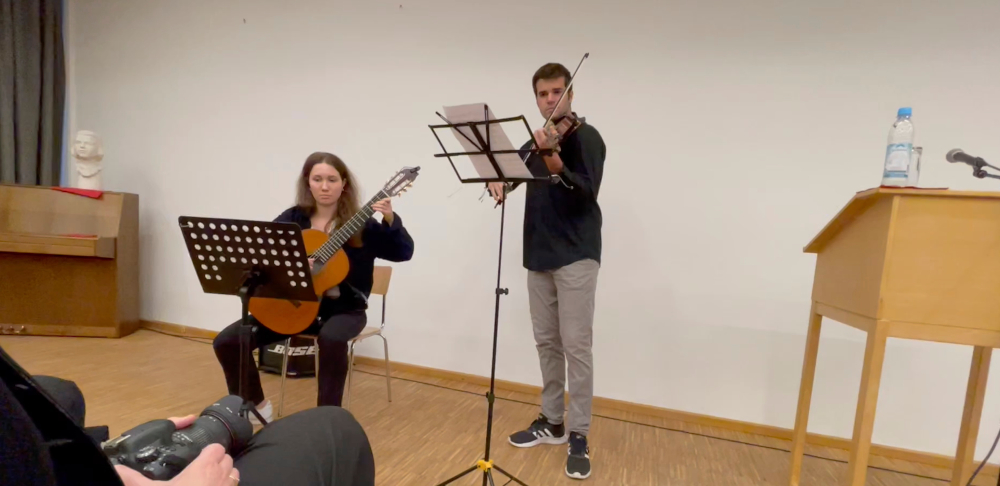 Ein sehr ergreifender und gelungener musikalischer Auftakt durch Blerta Dermaku (Gitarre) und Daniel Barros(Violine) (Studentenschaft)